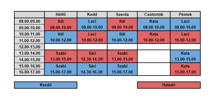 - Az edzések a tavaszi félévben 16 hetet tartalmaznak, Február 16-tól Június 19-ig . A kurzus során 2 hét tervezett szünet lesz: Március 30-Április 5-ig (Húsvét), Május 25-29. (Pünkösd)