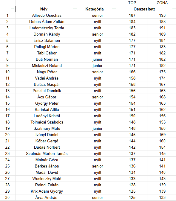 Itt láthatjátok a 10. forduló után az összesített eredményeket, a hétvégén várunk benneteket a következő kihívásra.