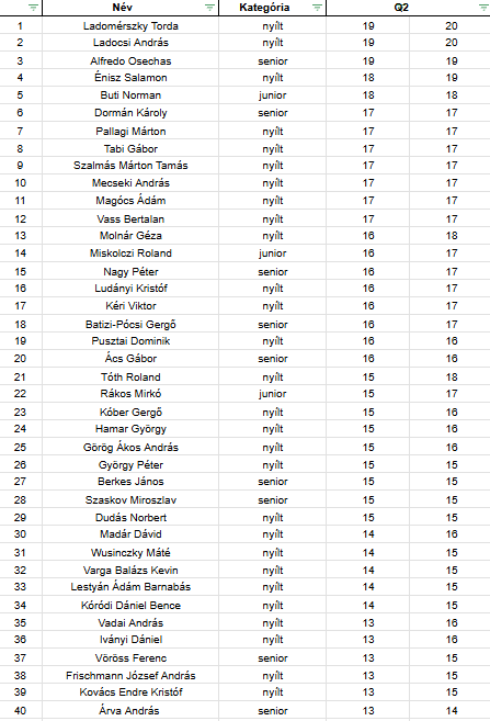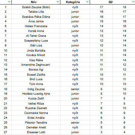 Campus 1000 Q2 results Here you can see the Q2 results. The results after the 1st week: Female: Male: